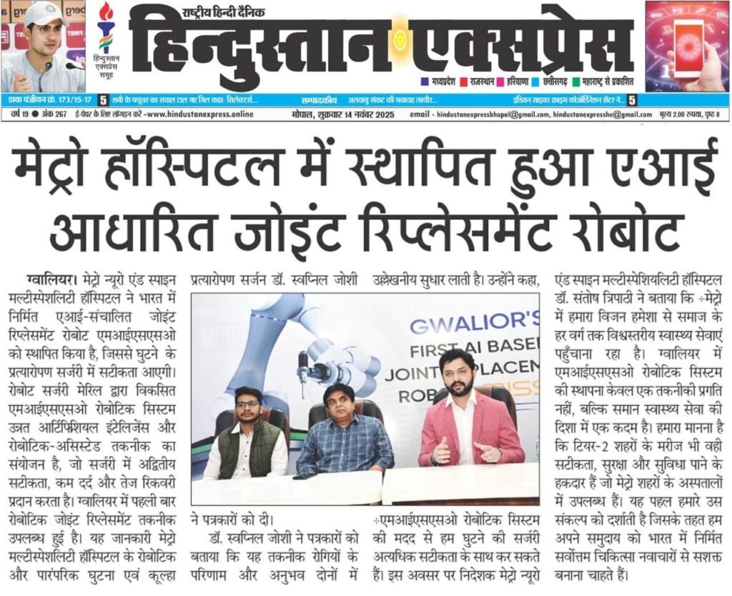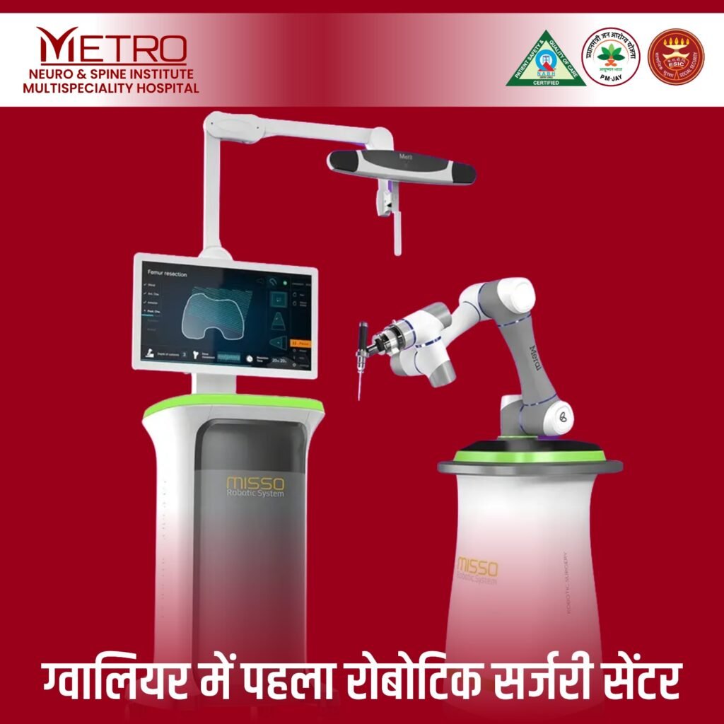 Metro Neuro Spine Institute is the first center in the Gwalior–Chambal–Bundelkhand region to introduce Total Knee Replacement (TKR), Total Hip Replacement (THR), and Robotic Joint Replacement Surgery.