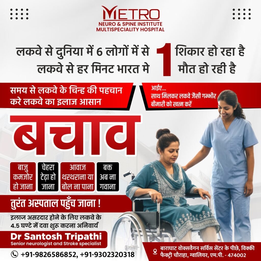 Metro Neuro Spine Institute is the first dedicated Neurology and Spine Hospital in the Gwalior–Chambal region, established by Dr. Santosh Tripathi (DM – Neurology).